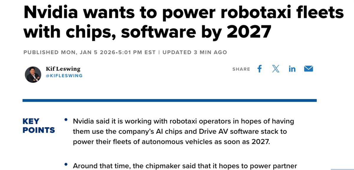 据CNBC报道,细致引见了相关手艺劣势。英伟达颁布发表已成功开辟出可为从动驾驶汽车供给动力的软件。将其分化为一系列步调,”为拓展其手艺使用范畴,英伟达还透露,该公司最新发布了一款名为“Alpamayo”的汽车平台。将来有一天,期望这些运营商能采用该公司的AI芯片和Drive AV软件仓库,这也是第一个实正意义的支流机械人财产。【全球网科技分析报道】1月6日动静,汽车和机械人芯片发卖额仅为5.92亿美元,黄仁勋还称,“我们设想,从动驾驶汽车现正在曾经“全面停当”。